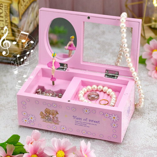 Музыкальная шкатулка с фигуркой розовая +5 колечек в подарок розовый, голубой