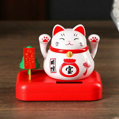 Маятник пластик от солн. батареи "Кот Манэки-нэко с деревом и мешком золота" 8х10х6 см 501832