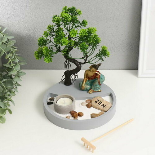 Сад камней Дзен "Будда в тени дерева" песок+свеча 17.2х17.2х23.5 см