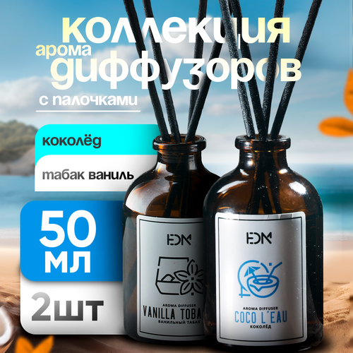 Набор ароматических диффузоров для дома "Коколёд" и "Табак-ваниль", HEDONISME, 2 x 50 мл