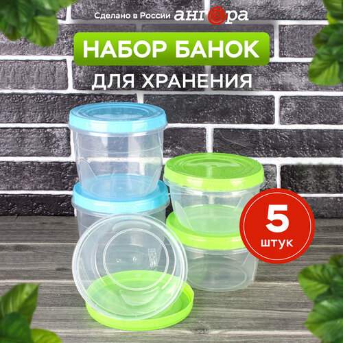 Набор контейнеров "Ангора" для еды и сыпучих продуктов, 5 штук, 700мл + 1000мл, голубой и салатовый