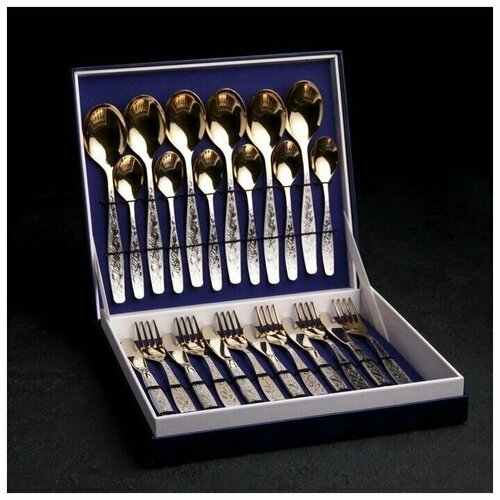 Набор столовых приборов 24 предмета в декоративной коробке цв. золото/серебро Уралочка