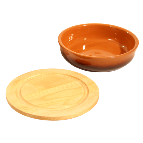 Ёмкость с деревянной крышкой (разделочной доской). Диаметр - 13 см, высота - 6 см.