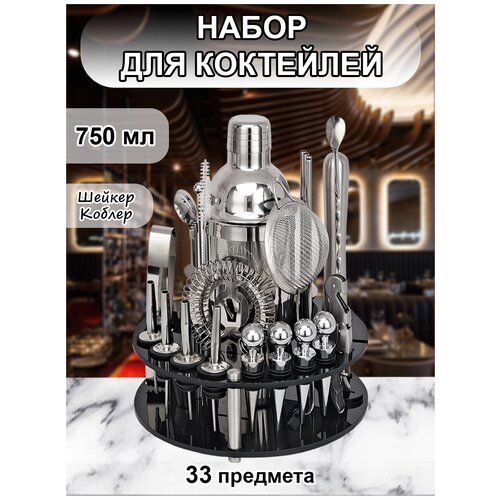 Набор для приготовления коктейлей - 33 аксессуара для напитков, набор бармена, подарок мужчине