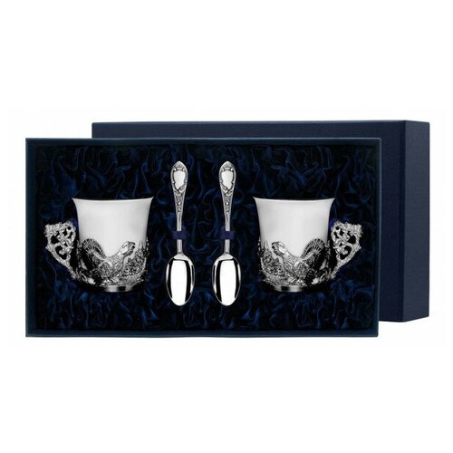 Набор кофейный "Глухарь" с чернением, 4 предмета (чашки , ложки), Аргента, арт. 670НБ07806 / PREMIUM