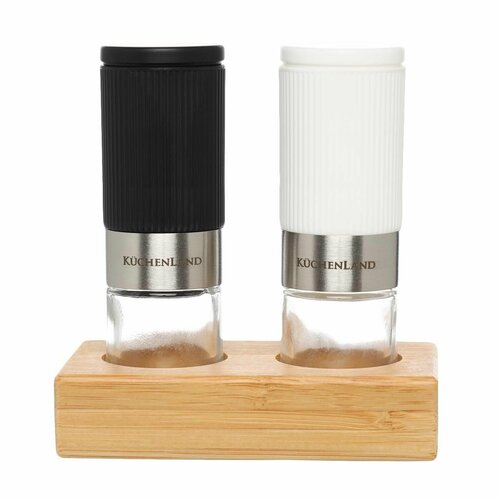 Мельница для специй, 2 шт, механическая, на подставке, пластик/бамбук, черная/белая, B&W