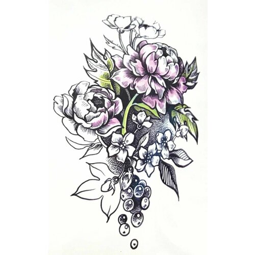 Тату переводное - Букет пионов, 12х19 см, цвет розовый, 1 шт