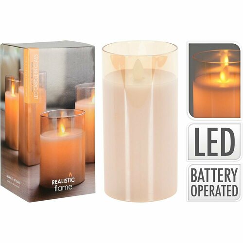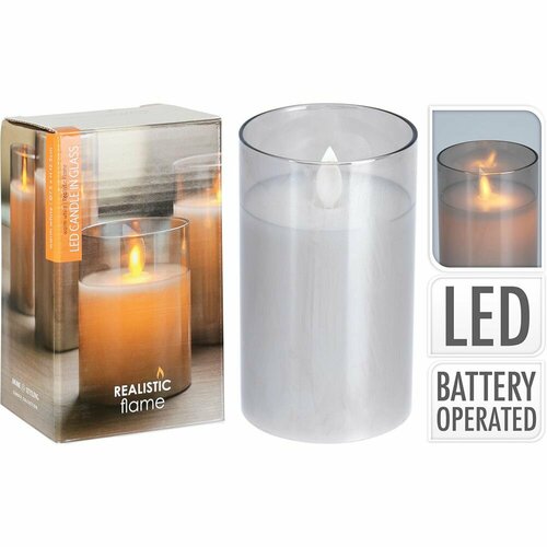 Свеча в стеклянном подсвечнике 1LED h15 см на батарейках