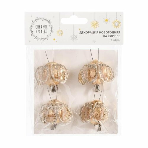 Декорация новогодняя на клипсе, Снежное кружево, 4 шт, в ассортименте
