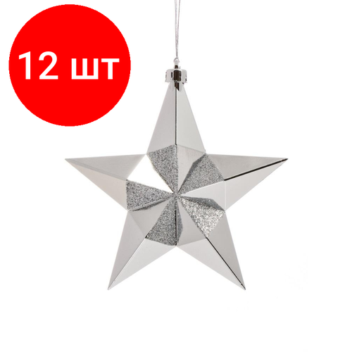 Комплект 12 штук, Украшение новогоднее подвесное Звезда в серебре 2.4x13x13см 89170