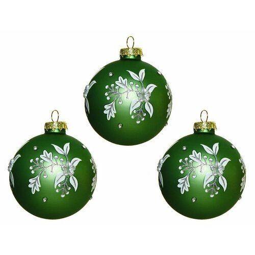 Набор стеклянных ёлочных шаров белое цветение, шалфейный, 8 см (упаковка 3 шт.), Kaemingk (Decoris)