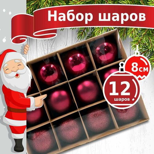 Елочные шары набор Winter Glade 8012G003 красные 8 см 12 шт
