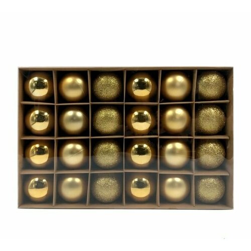 Набор ёлочных шаров пластик, 6 см, 24 шт, золотой микс
