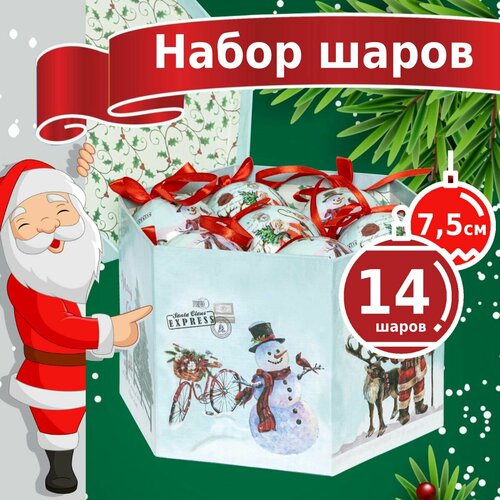 Елочные шары набор Winter Glade - 7514G273 с рисунком 7,5 см 14 шт