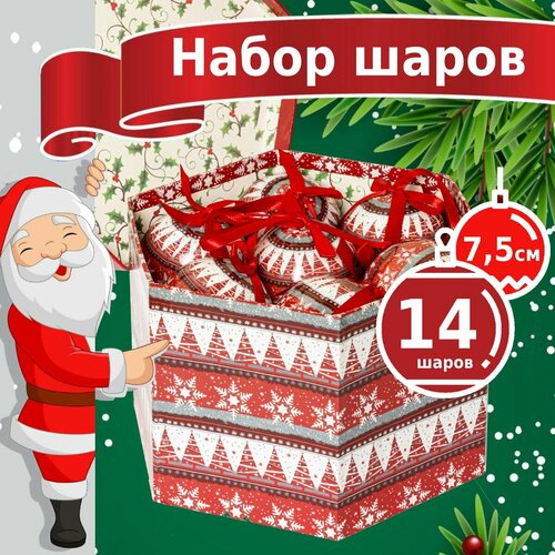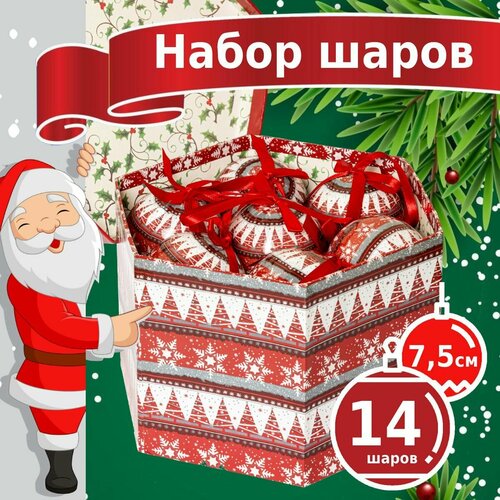 Набор ёлочных шаров Winter Glade 7514G020, разноцветный микс, 7,5 см, 14 шт, папье-маше