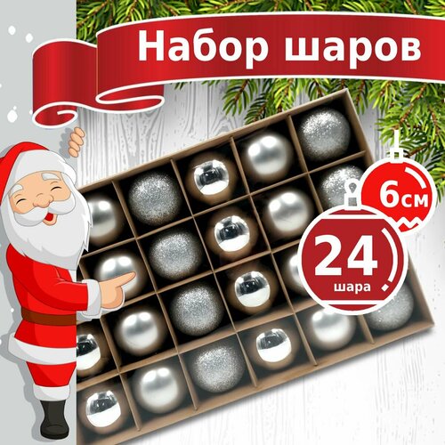 Елочные шары набор Winter Glade 6024G002 серебряные 6 см 24 шт
