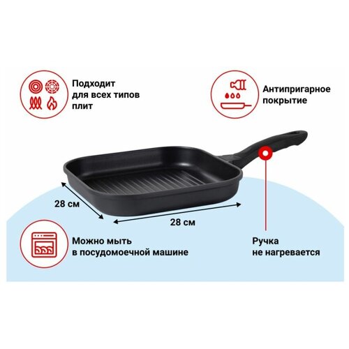 Сковорода-гриль BERKRAFT Westa, размеры 28х28 см, материал: литой алюминий