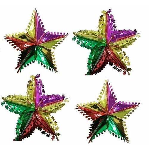 Подвесное украшение фольгированное Снежинки 2шт + Звезды 2шт, 50 см набор 4 шт