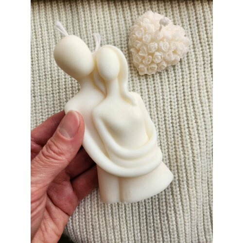 Набор интерьерных свечей в форме Влюбленной пары и сердечка из розочек кремового цвета "Нежная нежность"/Уют и тепло в вашем доме