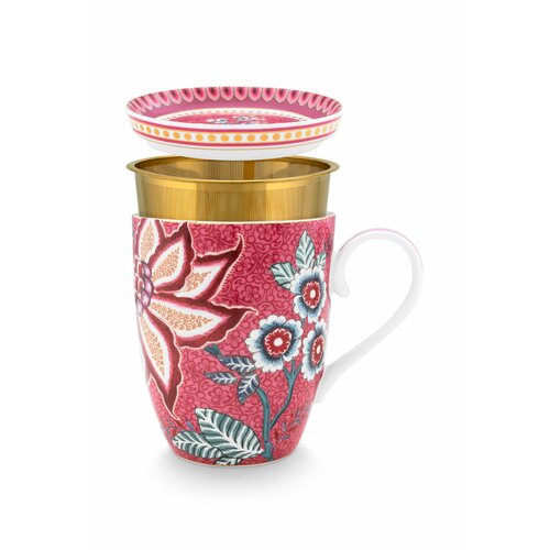 Набор из 3-х предметов для чаепития Pip Studio Flower Festival Dark Pink: Кружка 350 мл, блюдце для чайных пакетиков, ситечко для чая, WW.51.020.174