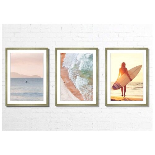 Набор из 3-х картин на холсте в раме "Девушка на пляже", 35х48, Картинная Мануфактура