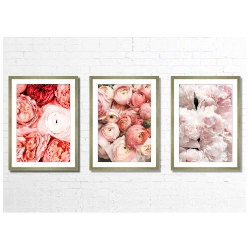 Набор из интерьерных постеров (картин) в раме на холсте 35x48, "Эстетика цветов", 3 шт. картины на холсте