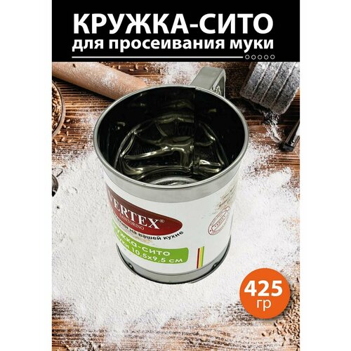 Кружка-сито Vertex из нержавеющей стали, серебристого цвета.