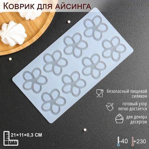 Силиконовый коврик для айсинга «Цветочки», 8 ячеек, 21×11×0,3 см, цвет прозрачный
