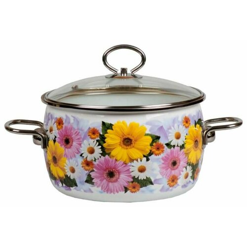 Кастрюля VITROSS Ornamento 2л, эмалированная сталь, со стеклянной крышкой