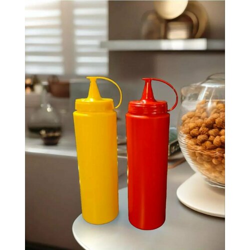 Соусница для горчицы кетчупа томатного соуса . Бутылка для соуса пластиковая . В наборе 2шт. , по 700 мл, цвет красный и желтый
