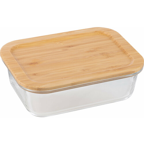 Контейнер из жаропрочного стекла объем 1000 мл, с крышкой из натурального бамбука, прямоугольный