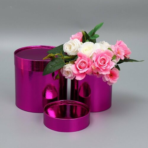 Набор коробок 2в1 круглые «Однотонный», розовый металлик, 12 х 12, 15 х 15 см