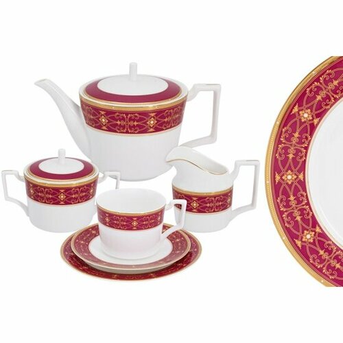 Чайный сервиз "Вивьен" (комбинированный) на 6 персон, 21 предмет, фарфор, Anna Lafarg Emily, AL-18-129_21_K-E5