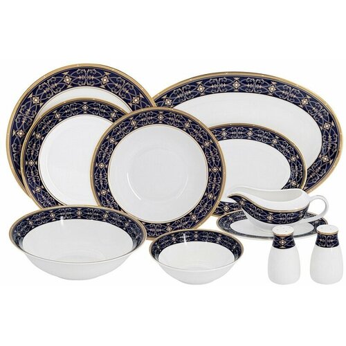 Обеденный сервиз "Офелия" на 12 персон, 50 предметов, цвет кобальт, фарфор, Anna Lafarg Emily, AL-22-005B_50-E5