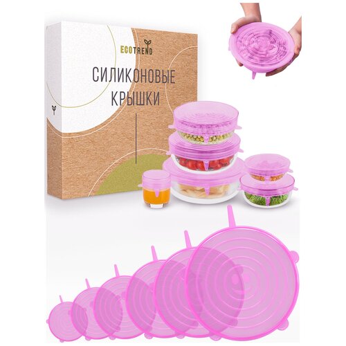 Универсальные растягивающиеся силиконовые крышки ECOTREND для контейнеров, гастроемкости, продуктов и СВЧ / Набор эко крышек в коробке / Комплект 6 шт