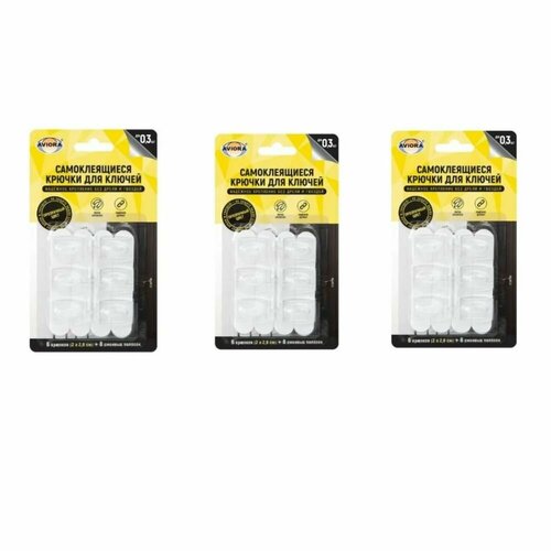 Aviora Крючок самоклеящийся 2,8 х 2 см, 6 шт в уп. - 3 упаковки