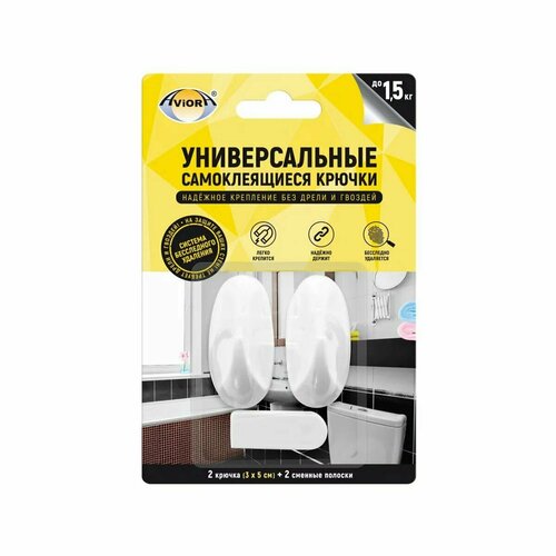 Крючки самоклеящиеся AVIORA, комплект 2 крючка 3 самоклеящиеся полоски, белые, большие, до 2,5 кг, 302-101