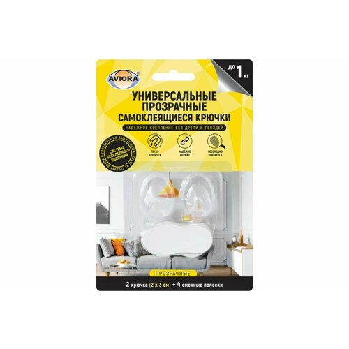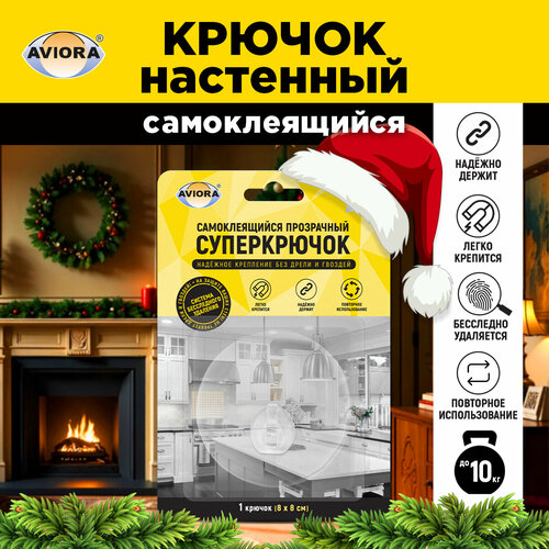 Aviora Самоклеящийся прозрачный суперкрючок Aviora с системой бесследного удаления 8*8 см, 1 шт