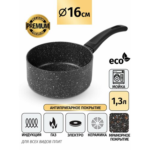 Ковш Royal Chef, черный. Объем 1,31 л, диаметр 16 см. Кованый алюминий, антипригарное покрытие.