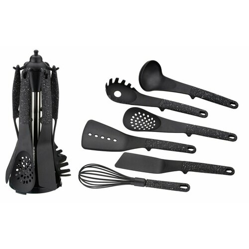 Набор кухонных принадлежностей для приготовления пищи на подставке , 7 предметов. Цвет черный