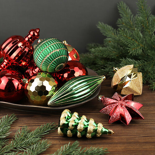 Winter Deco Набор елочных игрушек Midnight Miracle 8-15 см, 14 шт, красный с зеленым, пластик 220028