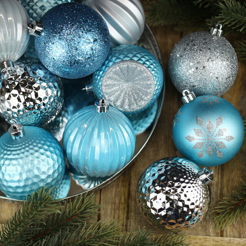 Набор пластиковых шаров вальцер ленто, пластик, голубой, 6-8 см, 24 шт, Winter Deco 220036