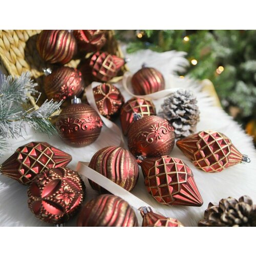 Набор шаров пластик d-5 см, 9 шт "Новогодние ветви" бордовый 4316792