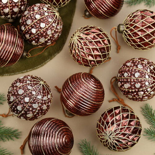 Набор стеклянных шаров шантильи, 8 см, 12 шт, Winter Deco 19039-23293
