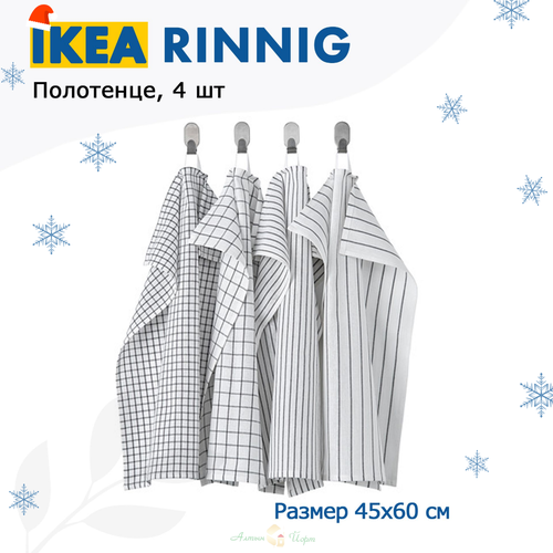 IKEA RINNIG Полотенце кухонное, белый, темно-серый, с рисунком, 45x60 см икеа