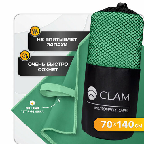 Спортивное полотенце из микрофибры быстросохнущее для зала и для бассейна 70х140 см, зеленое