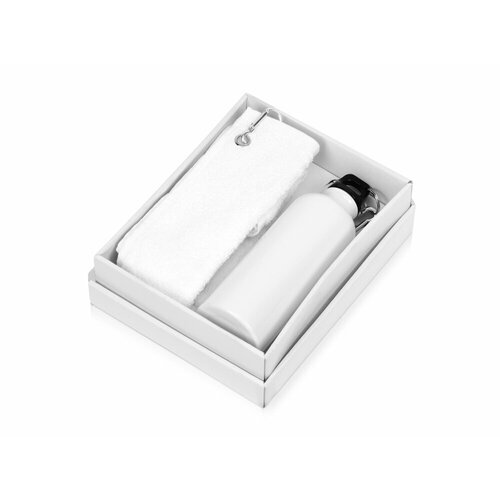 Набор «Фитнес» (853206, белый, полотенце 50 х 31 см, фляга d6,5 х 20,5, хлопок, металл)