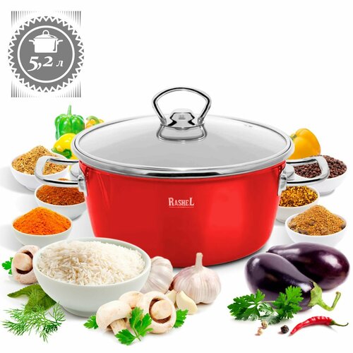 Кастрюля эмалированная 5,2 л с крышкой 26 см Rashel для газовых, электрических и индукционных плит, эмаль, посуда для индукции эмалированная сталь