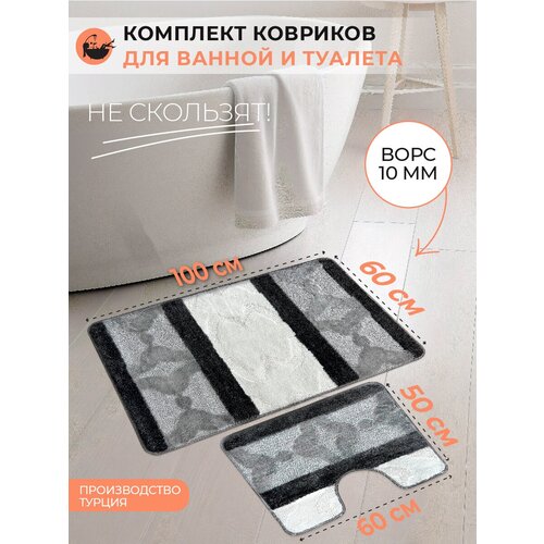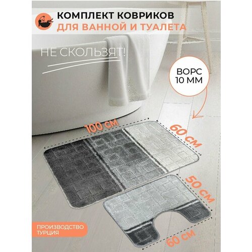 Набор противоскользящих ковриков для ванной и туалета, Eurobano 100*60+50*60, 2 шт.