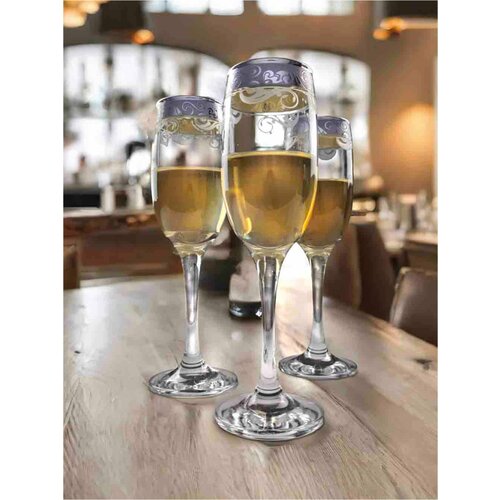 Подарочный набор бокалов / фужеров для шампанского с алмазной гравировкой Promsiz ERAN Матрица, 180 мл / 6 шт.
